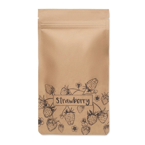 Strawberry growing kit including garden compost in a paper packaging. Made in EU.