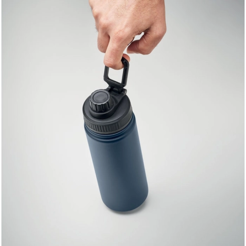 Double wall stainless steel vacuum insulated bottle with sip cap on lid and carry handle. Capacity: 500 ml.